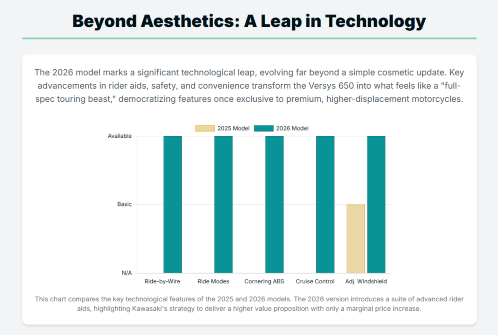 This section meticulously details the advancements in the 2026 Versys 650, directly addressing and correcting the initial misconception of an aesthetics-only update by providing a comprehensive overview of its evolution.
