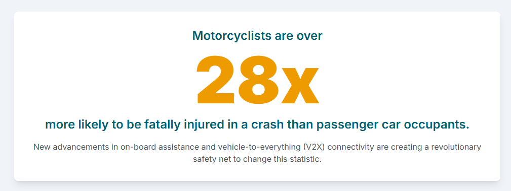 Motorcyclists represent a highly vulnerable class of road users, making the implementation of proactive safety technology critical to reducing collision rates and severity.1 Robert Bosch GmbH, a world leader in motorcycle safety technology 2, estimates that the widespread adoption of radar-based Advanced Rider Assistance Systems (ARAS) could potentially prevent one in six motorcycle accidents.2