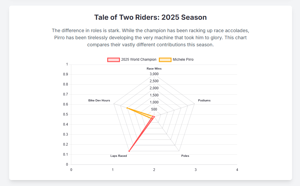 However, placing Pirro on the superior GP25 machine—the platform that swept the top five positions in 2024—automatically elevates his competitive ceiling. This machine synergy suggests that his realistic competitive potential lies significantly higher than his historical average on less competitive equipment.