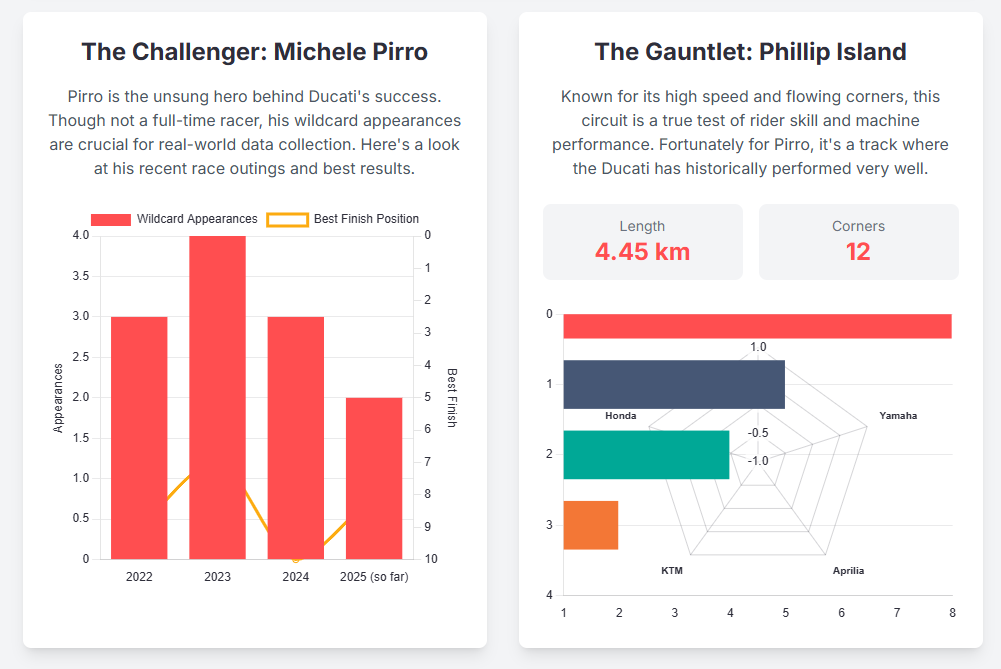 Phillip Island presents one of the most demanding circuits on the calendar, defined by its high-speed, sweeping corners and long, flat-out sections.13 These characteristics uniquely play to the inherent strengths of the Ducati Desmosedici architecture, a factor that profoundly mitigates the difficulty of installing a substitute rider.