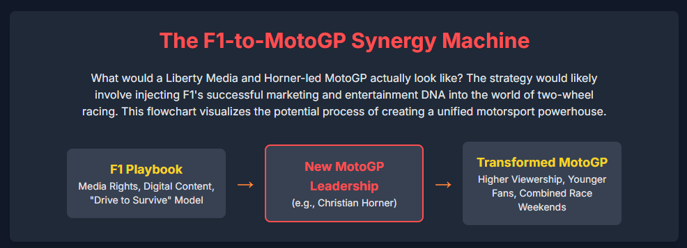 The highly speculative link between Christian Horner MotoGP Leadership and the Liberty Media Dorna Sports acquisition represents one of the most compelling executive career narratives in modern motorsport. The alignment of need, timing, and skill set is remarkably strong.