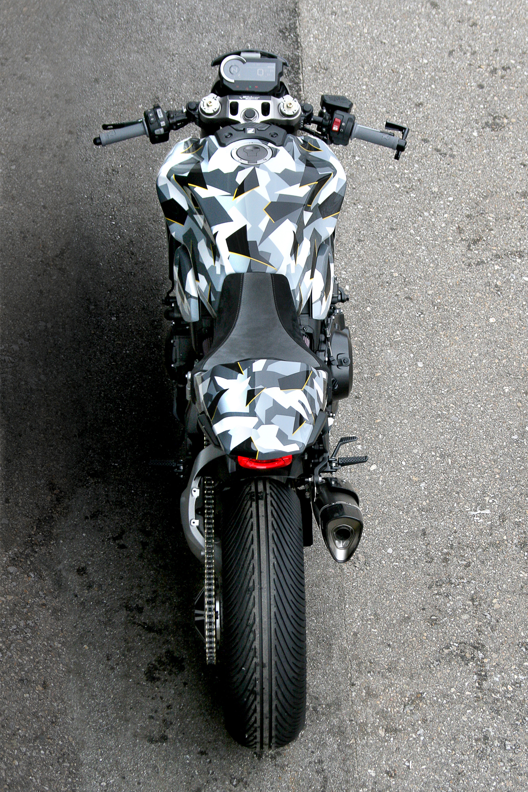 The contemporary disguise designs on the tank and the framing was made by exact painting work and was step by step developed in 7 layers.