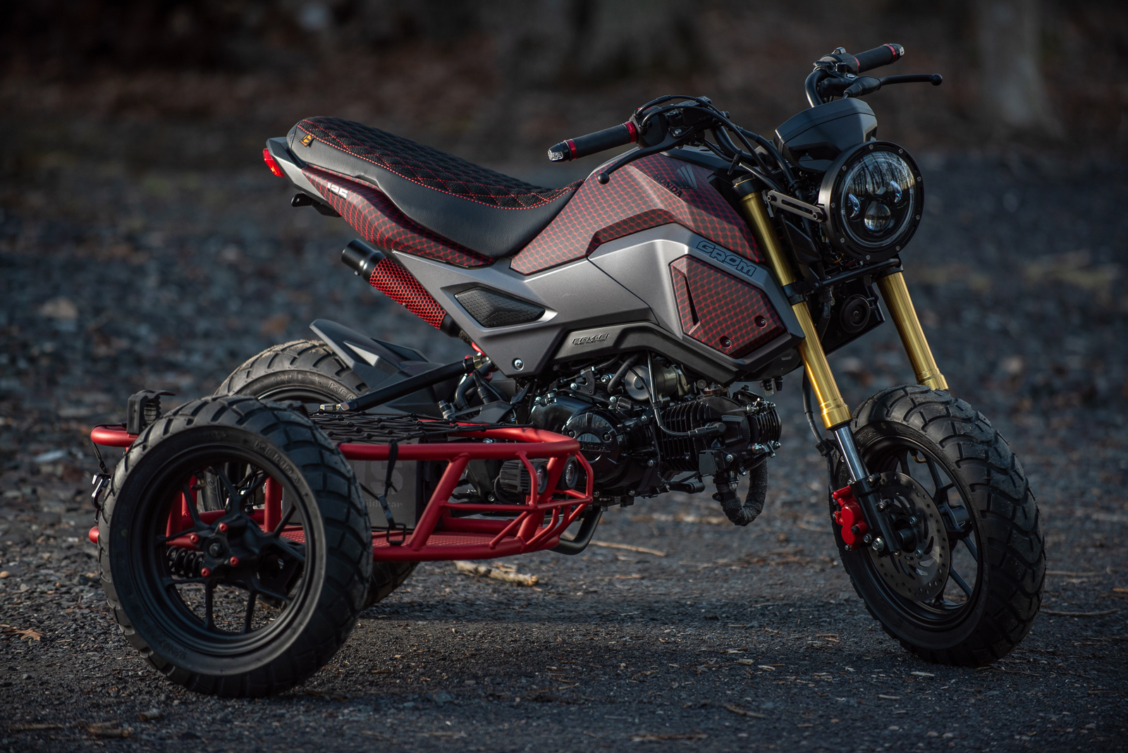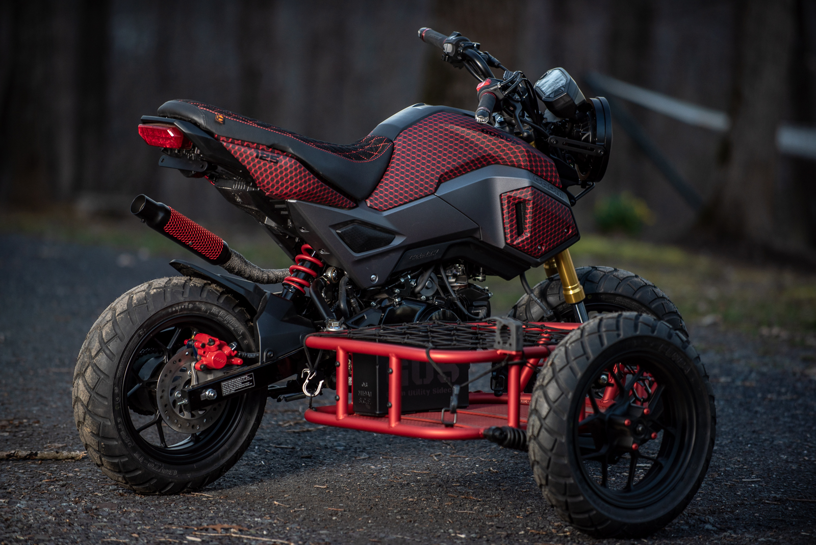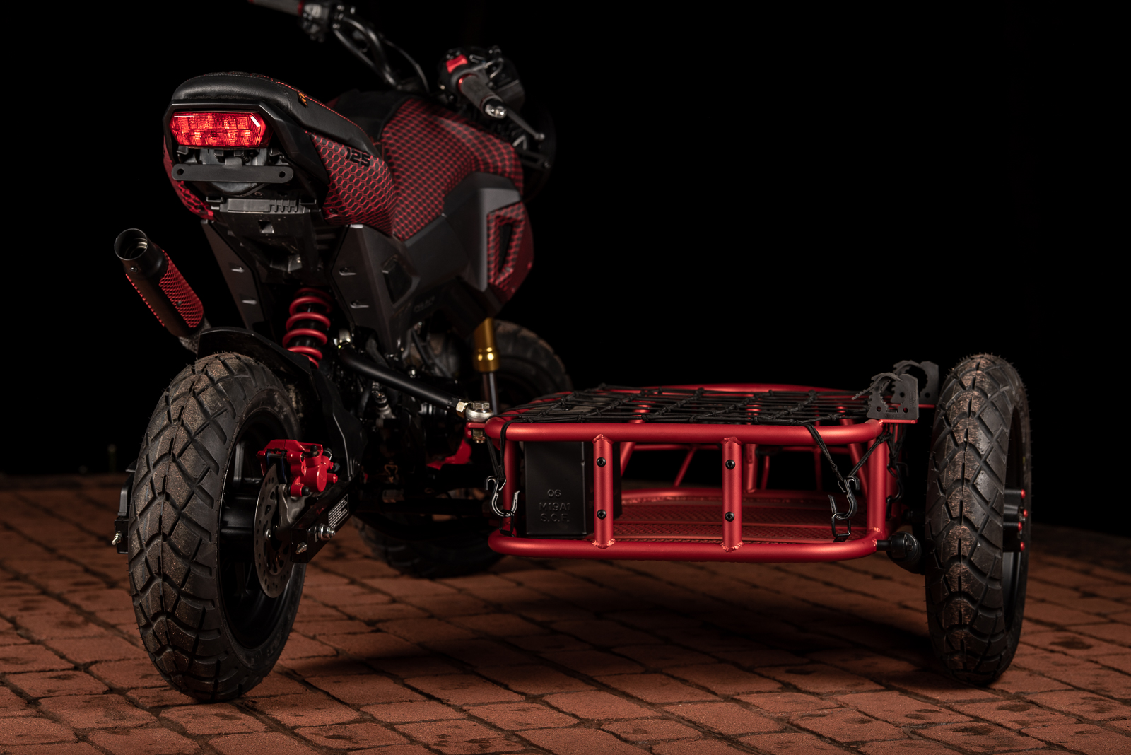 This project began with a 2018 Honda MSX 125 Grom. Modifications to the plastics, lighting, seat and exhaust were made but the primary focus was the addition of a utility sidecar that was versatile for the owner.