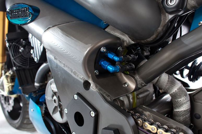 - Foot peg brackets CNC machined at MotoMorphic to specific customer fit