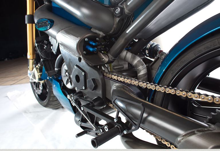 - 4 valve per cylinder liquid cooled V-twin dry sump, integrated 6 speed transmission, slipper clutch, Factory Pro Shift kit