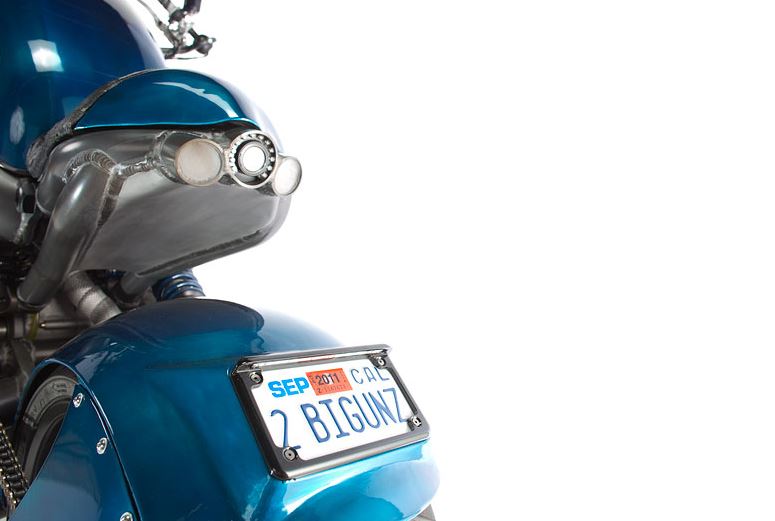 - Scoop, fenders, chin cowl, and buttnut: Hammered, wheeled and gas welded aluminum