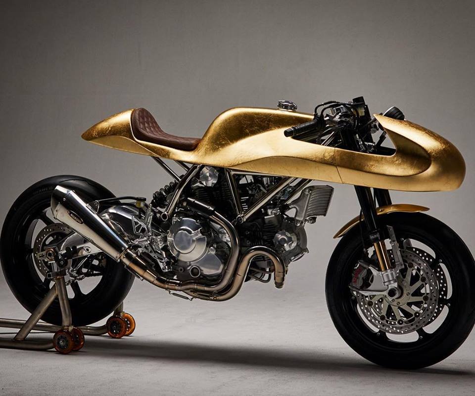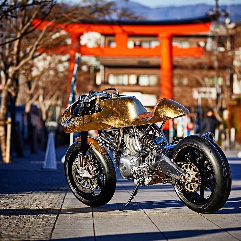 Krax Moto is team of five and come up with this build of cafe racer with all in Golden paint scheme.
