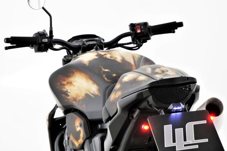 The entire body structure and aesthetics looks very and goes on with Mad Max movie .It also has a license plate that is short and it also gets indicators from Rizoma that is well supported by clutch levers and brakes that are adjustable.