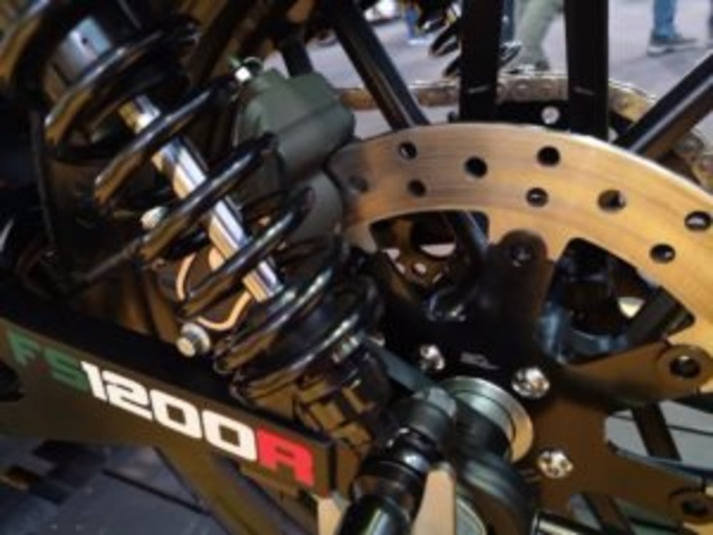 Numerous different changes have been made to the FS1200R: notwithstanding the previously mentioned adjustments, a 19-inch front edge has been fitted to the back , while aluminum spacers have been fitted to the front to enable a solitary plate to be fitted, while the tires are Dunlop DT3 Flat.