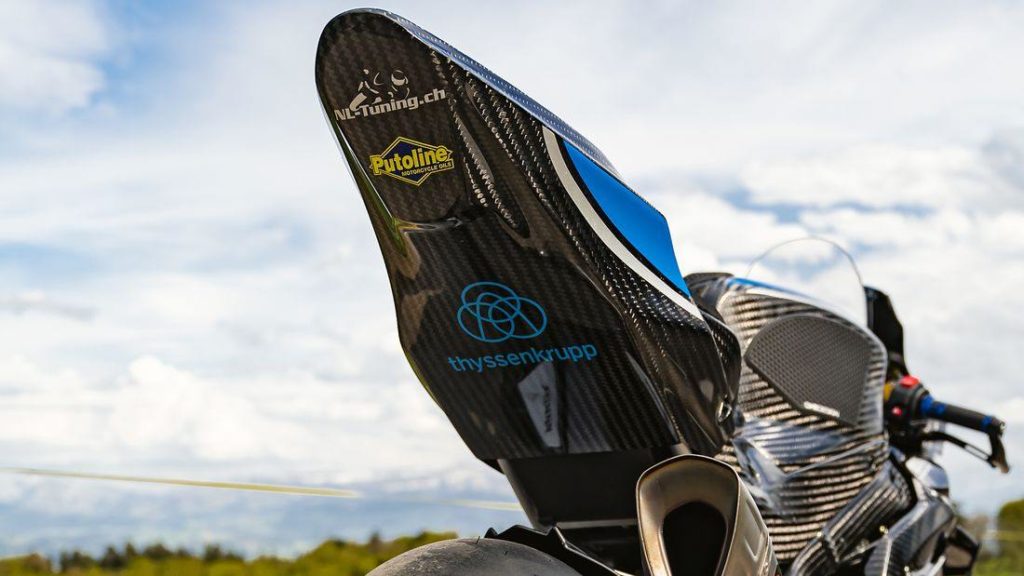 As far as the component goes the ThyssenKrupp Rims are made of carbon. Plus it gets Akrapovic exhaust.