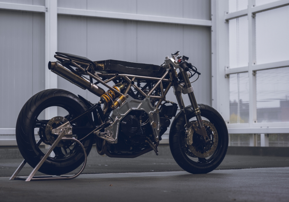 The engine is an original BoT (Battle of Twins) Ducati 944 cc race engine, with open Keihin 41 FCR carburetors.Nonetheless, my dream would only start to be assembled by finding what I like to call the Holy Grail, a lost Bimota Tesi Omega frame, which I simply decided to turn around to obtain a perfect geometry for the future trellis frame, in addition to using a 15CDV6 aircraft tube due to the materials high performance.