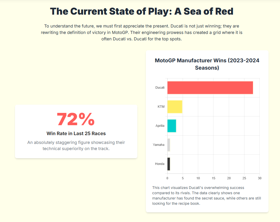 The combination of these factors demonstrates that Ducati has successfully acquired a rider whose skill set maps perfectly onto the challenges created by the regulatory shift.
