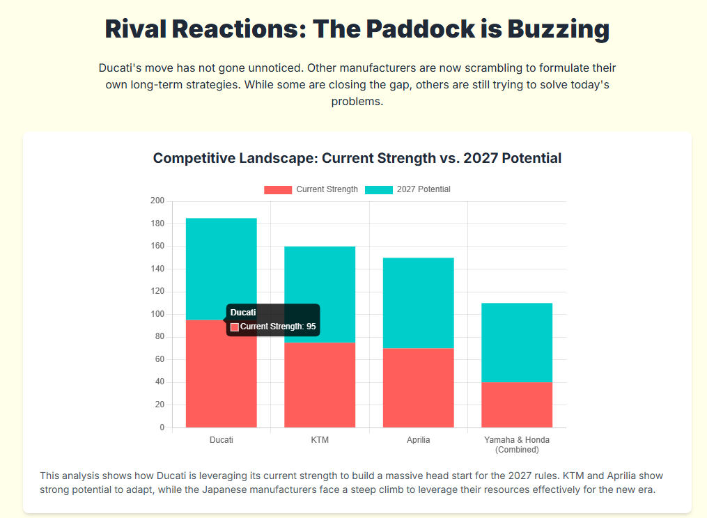 Ducati’s Bulega maneuver gains significance when contrasted with the strategies adopted by other leading manufacturers preparing for 2027. These strategies reveal differing approaches to resource allocation and talent specialization.