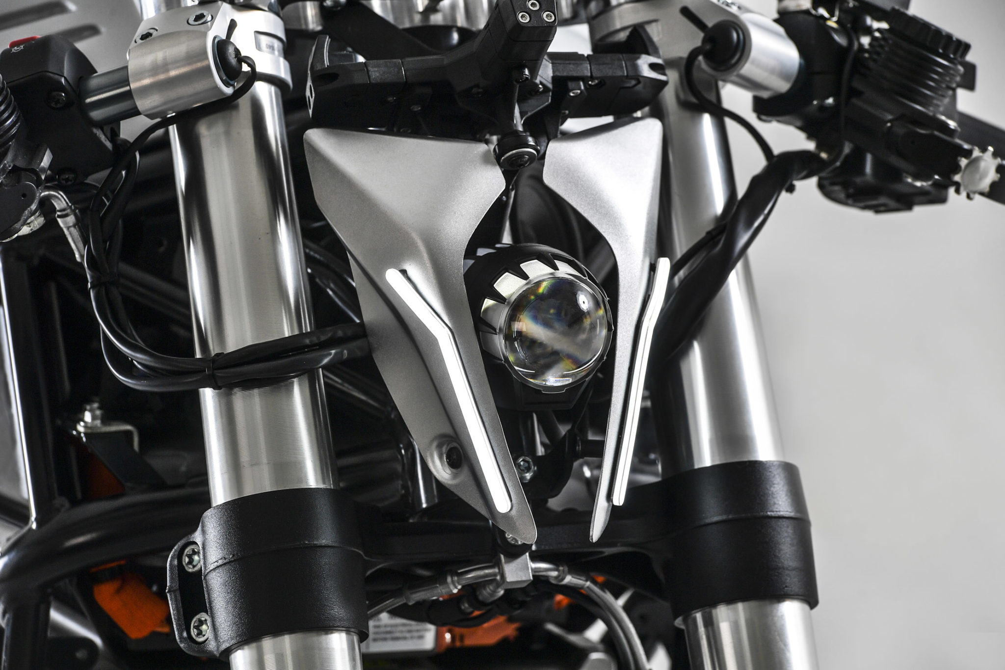 However, the character of the bike looks different because of the two LED daylights. Components are made in Germany and entirely homologated.