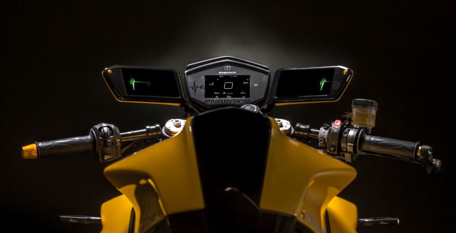 The Energica motorbike is likewise fitted with clever mirrors. The Head-up Displays comprise of two Samsung Galaxy A series[3] gadgets coordinated into mirrors which, on account of the recordings created by the two cameras – one back and one front – on the motorbike, alter street wellbeing, examining pictures continuously and cautioning the rider of any dangers and obstructions ahead.
