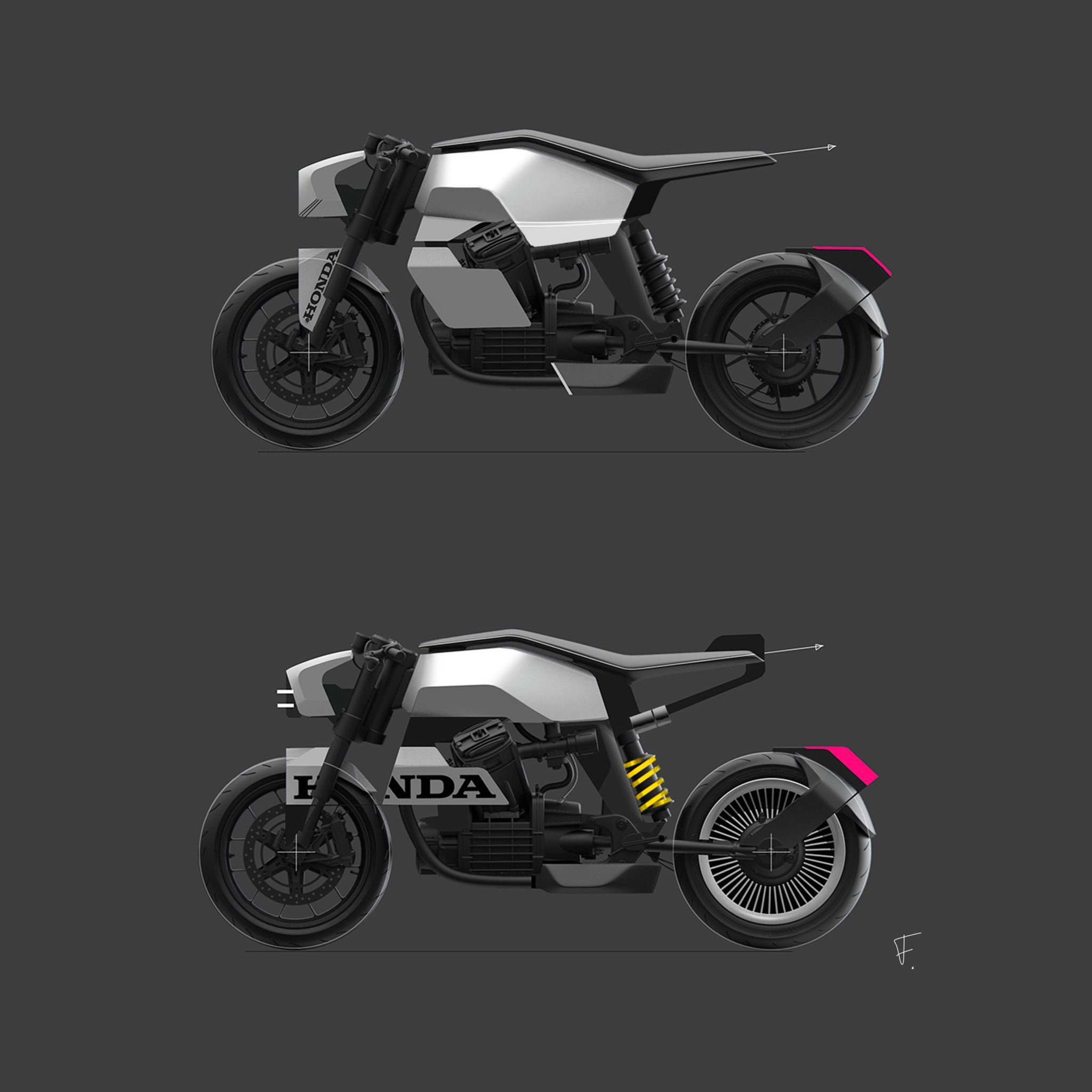The sentiment drives to create a unique bicycle with a sculpted body somewhere between motorcycle and cycle, instead of hiding all electronic elements.