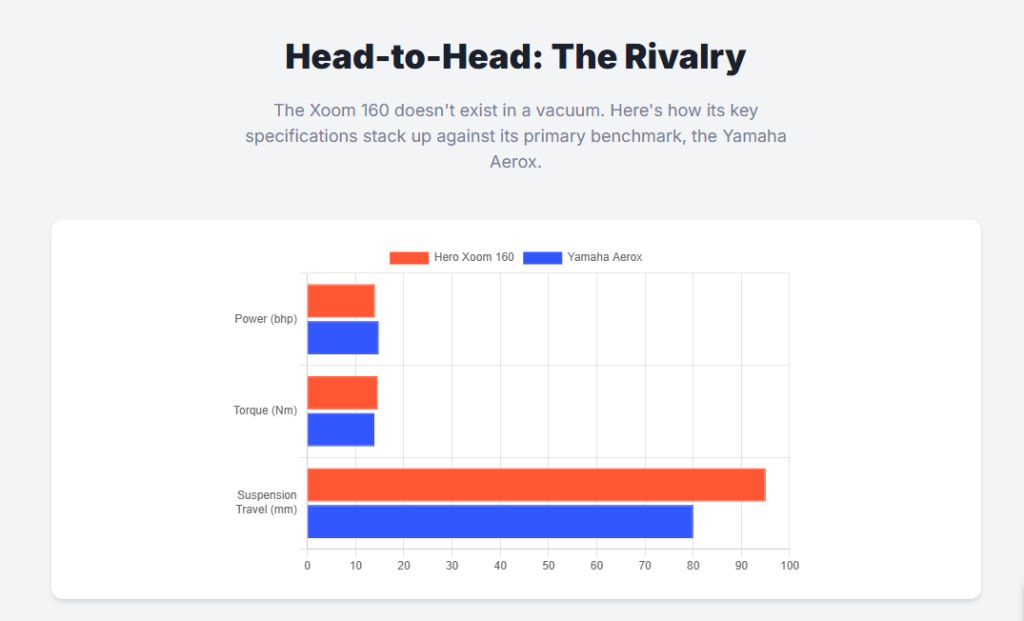| Parameter | Hero Xoom 160 | Yamaha Aerox 155 | Aprilia SXR 160 |