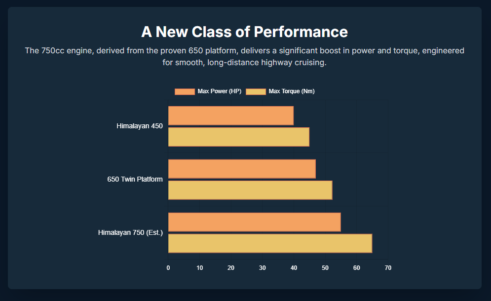 The 650cc parallel-twin engine was previously engineered with a power output capped at 47 hp to comply with Europe’s A2 license regulations.10 By increasing the displacement to 750cc and boosting the power to 50-55 HP/PS, Royal Enfield is strategically moving beyond this A2 limitation for this specific model. This indicates a clear intent to cater to a segment of riders who desire more performance without being restricted by license categories, particularly in markets where such regulations are less stringent or for riders with full licenses. This is not about winning a “spec-sheet” game in raw power, but about providing usable and desired power for its intended purpose – adventure touring. This move allows Royal Enfield to directly compete with more powerful middleweight ADVs that are not A2-compliant, expanding its addressable market and elevating its brand perception in terms of performance capability. It also suggests a nuanced understanding of global market regulations and consumer preferences.