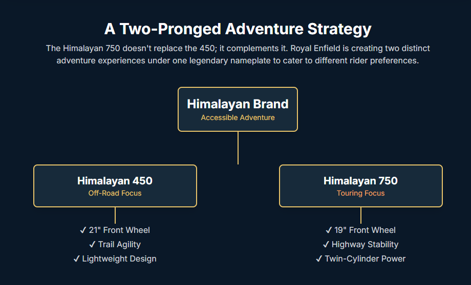 Royal Enfield has clearly articulated its strategy for the Himalayan 750: it will “sit alongside the existing 450 Himalayan” and “will not be replaced by the larger, new bike”.4 Steve Everitt, Lead Designer at Royal Enfield, further clarified this, stating, “They [will] totally coexist. They’re not in the same space at all – not aimed at the same customer”.4