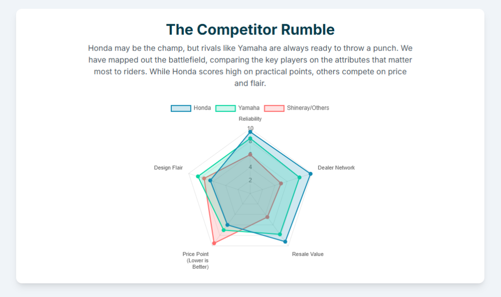 This operational flexibility is the primary defense mechanism against the highly aggressive competitive landscape. By maximizing production efficiency, Honda ensures its foundational strength—the capacity to produce vast volumes of affordable, reliable commuter bikes—remains unassailable. This scale enables Honda to maintain entry-level price competitiveness with models that are essential for market penetration and volume maintenance.9