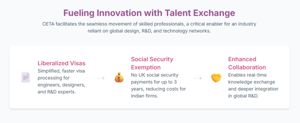 This directly translates into a tangible reduction in operational costs for Indian companies deploying their professionals to the UK. This is not merely an individual benefit but a strategic cost advantage for Indian service firms operating internationally. This provision makes Indian IT-led automotive services, engineering consultancies, and design firms significantly more competitive in the UK market. It encourages greater deployment of Indian talent and facilitates stronger Business-to-Business (B2B) partnerships, thereby providing a substantial boost to India’s services exports within the automotive domain.