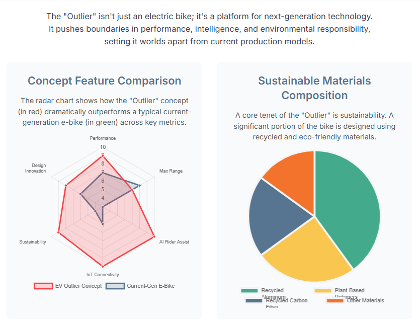 The aesthetic quality of the EV Outlier is a direct manifestation of its electromechanical structure. The placement of the motors in the wheel hubs allows for the low aero profile and futuristic stance that clearly distinguishes it from current motorcycle designs.4 The design philosophy sought to express a “gliding, light image” through smooth surfaces, while simultaneously exposing the unique mechanical components that are exclusive to the electric architecture.16
