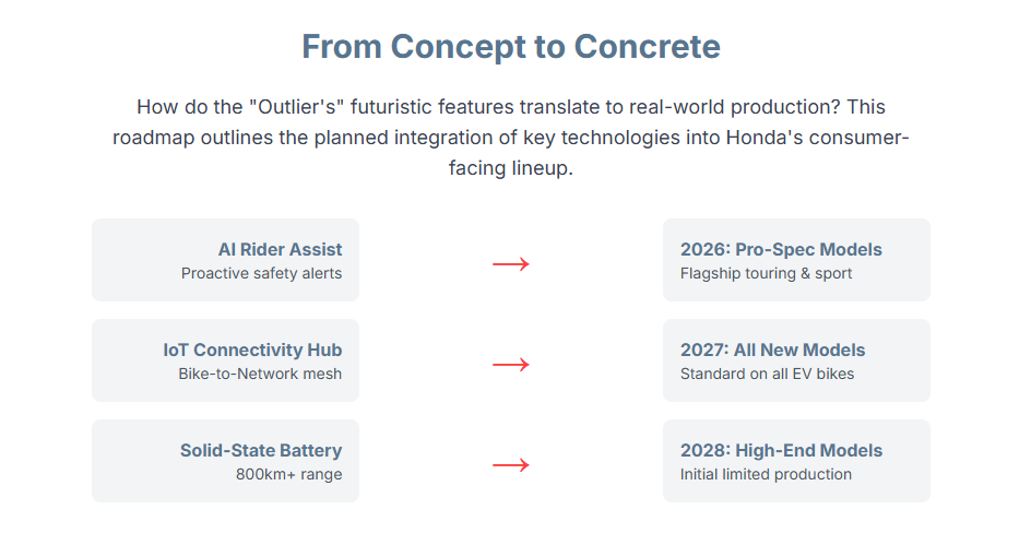 4. Honda EV Outlier Concept is a Glimpse in Future Motorcycling …, accessed October 31, 2025, https://www.bikewale.com/news/honda-ev-outlier-concept-is-a-glimpse-in-future-motorcycling/