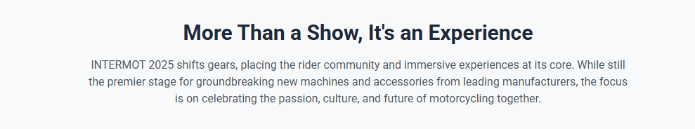 - Motorcycle fair in Cologne | INTERMOT, accessed on October 20, 2025, https://www.intermot-cologne.com/