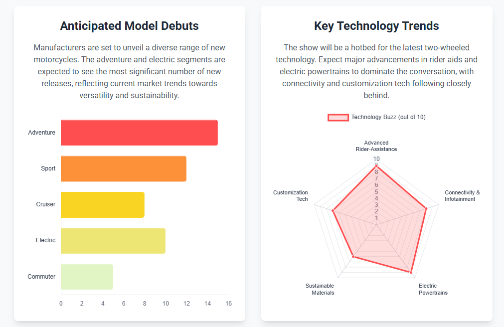 The INTERMOT 2025 event confirms the successful execution of a long-term strategic pivot by Koelnmesse. The fair has successfully differentiated itself from primary global launch platforms like EICMA (Milan) by embracing an Experiential and Retail focus, anchored by a strong B2C mandate. The confirmation of tier-one manufacturers, particularly the re-commitment of BMW Motorrad 6, validates this model and cements INTERMOT’s status as a high-caliber international event, indispensable for engaging the German and Central European markets.5