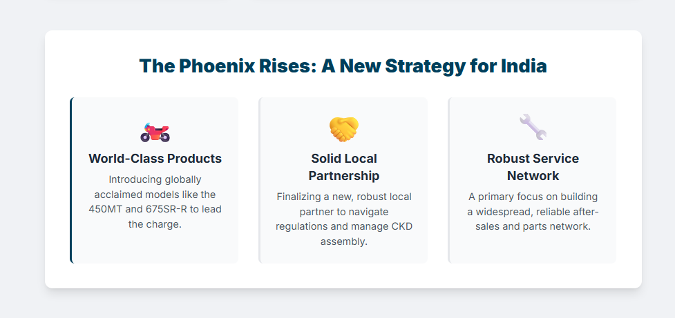 The company is, in fact, poised for a strategic and significant re-entry into the Indian market by mid-2025. This second phase of operations represents a clear scaling up of its efforts, characterized by a renewed focus on new, globally acclaimed models such as the 450MT and 675SR-R. Central to this strategy is the ongoing process of securing a robust local partner and a stated commitment to substantially improving its dealership and after-sales service networks across the country.