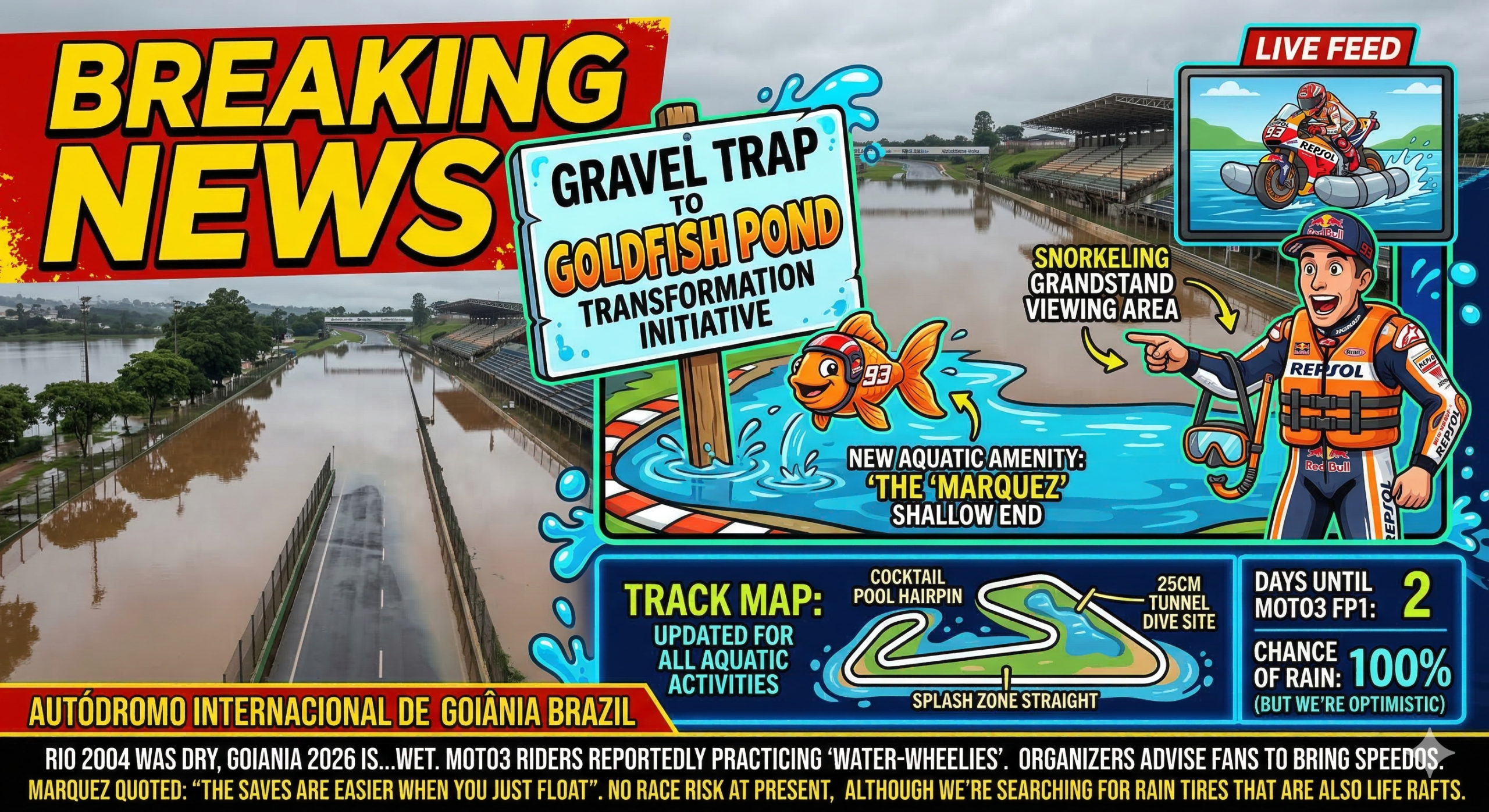 If you thought the 2026 season was going to be a straightforward title fight, Mother Nature just pulled a “hold my umbrella.” MotoGP is making its grand return to Brazil for the first time since 2004, but instead of the roar of engines, the dominant sound in Goiania right now is… splosh.
