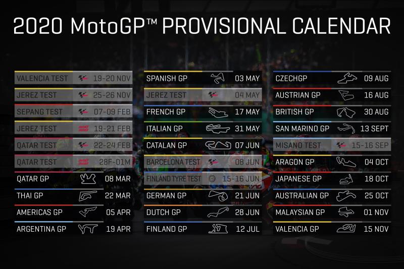 2020 MotoGP Calendar Source : MotoGP