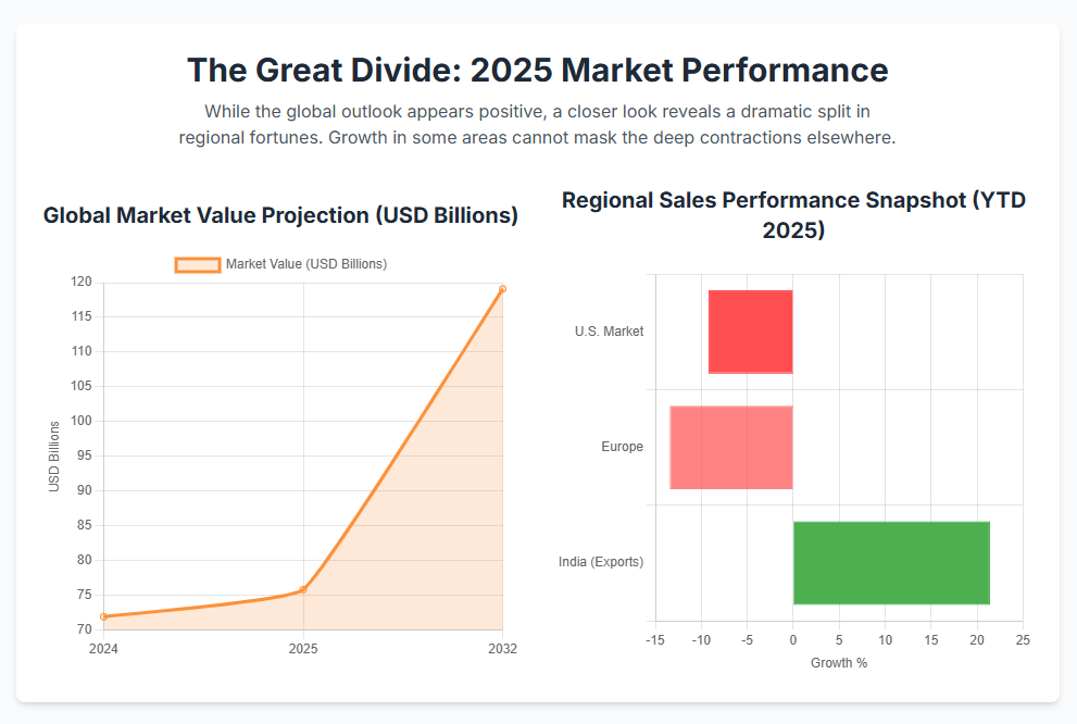 The global motorcycle market in 2025 presents a complex and bifurcated landscape. While overall global market value and unit sales are projected to exhibit growth, specific regions, notably the United States and parts of Europe, are experiencing a severe downturn characterized by plunging demand, a substantial volume of unsold inventory, and escalating financial pressures.1