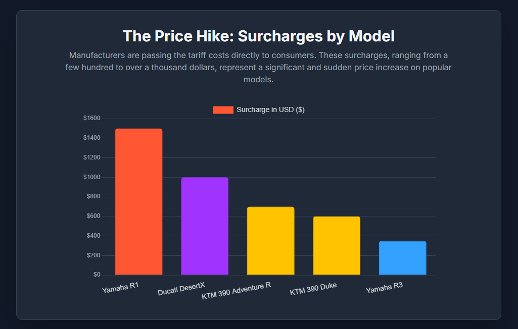 The tariffs have had a swift and measurable impact on the pricing strategies of several major motorcycle manufacturers. The most common response from international brands has been to pass the additional costs directly to consumers through price surcharges.