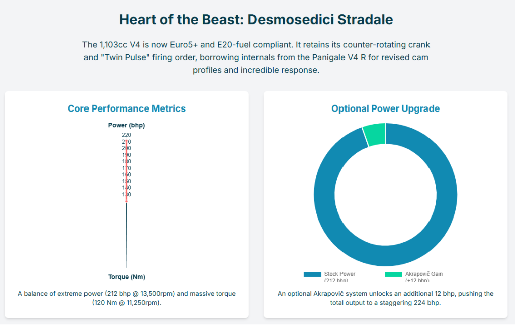 At the core of both variants lies the 1,103cc Desmosedici Stradale V4 engine. This unit produces a formidable 212 bhp at 13,500 rpm and 120 Nm of torque at 11,250 rpm .