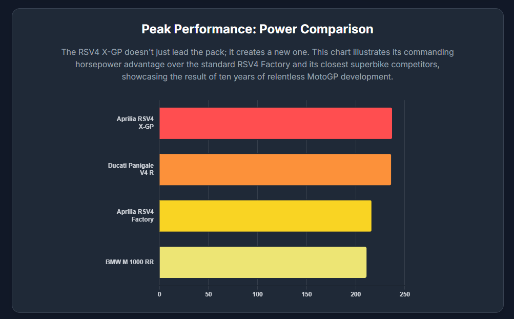 | RSV4 X-GP | 2025 | 30 | Full ground-effect aero, leg & tail wings | 238 hp | €90,000 |