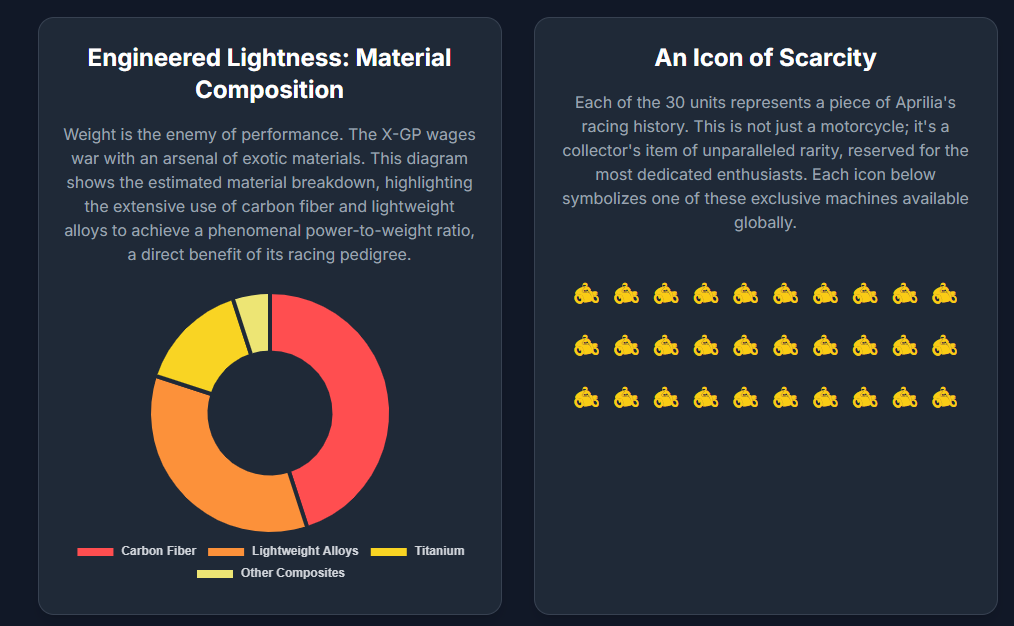 The price of the X-GP is not merely a reflection of the sum of its high-performance components. It is a strategic move that places the motorcycle in a small, highly competitive segment that includes models like the Ducati Superleggera V4 and the Honda RC213V-S.13 These motorcycles do not compete on sales volume but on their status as technological icons and cultural artifacts. The value of the X-GP is therefore not just in its performance capabilities but in its status as a tangible and highly exclusive piece of Aprilia’s racing history. The purchase is an investment in a machine that embodies the pinnacle of the brand’s engineering and heritage.