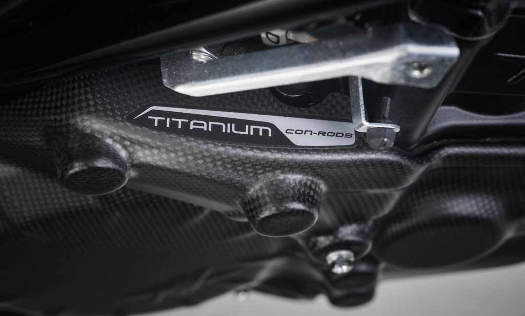 79 mm bore and a 50.9 mm stroke, with a high compression ratio of 13.4:1.10 The engine’s advanced architecture includes a countershaft to mitigate high-frequency secondary vibrations and a “D.O.H.C” timing system with radial valves and DLC (Diamond-Like Carbon) tappets.10