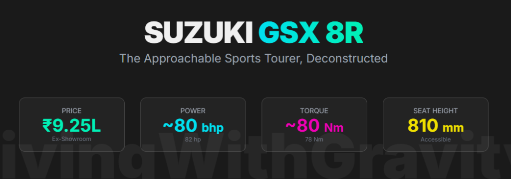 - Suzuki GSX-8R Review – All-rounder GSX – Bike India, accessed on July 23, 2025, https://bikeindia.in/suzuki-gsx-8r-review-all-rounder-gsx/