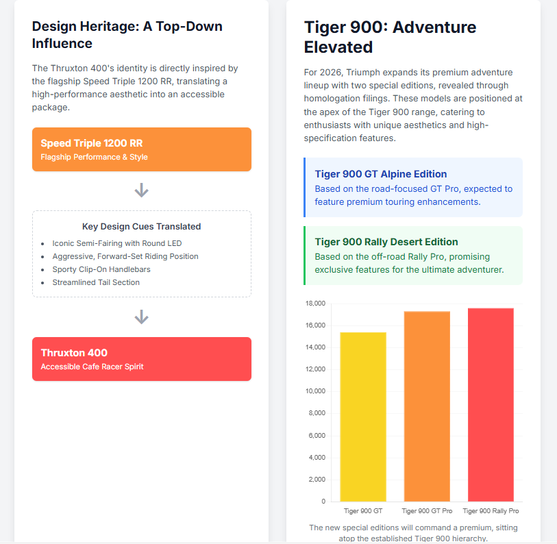 The 2026 Triumph lineup is not defined by a single radical new model but by a series of calculated and interconnected moves. The Thruxton 400 represents a strategic expansion of the highly successful 400cc platform, blending classic heritage with modern performance and design that deliberately nods to Triumph’s top-tier roadsters. Its technical differentiation from the Speed 400, from engine tuning to revised ergonomics, proves it is a truly distinct model. The new Tiger 900 editions, while not yet officially announced, signify a commitment to the high-end adventure market, offering exclusive, premium-spec variants for dedicated enthusiasts.