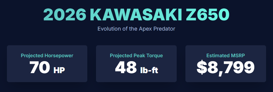 - 2026 Kawasaki Z650 S Announced for Europe – Motorcycle.com, accessed October 18, 2025, https://www.motorcycle.com/bikes/new-model-preview/2026-kawasaki-z650-s-announced-for-europe-44651944
