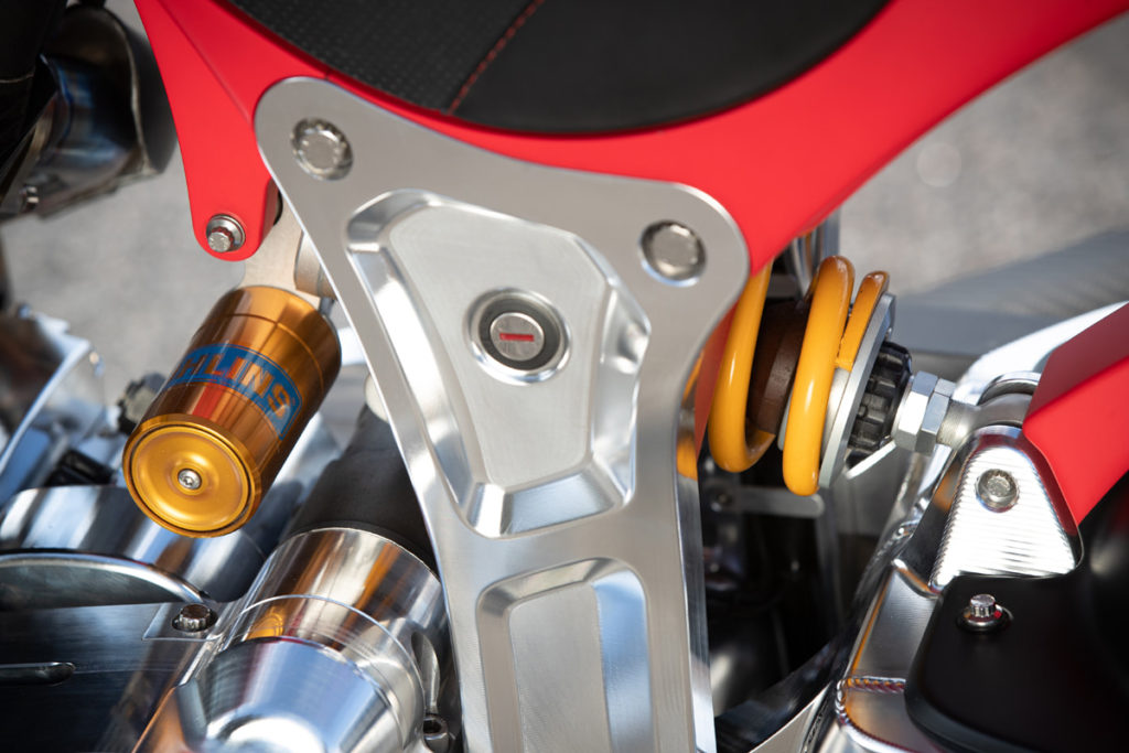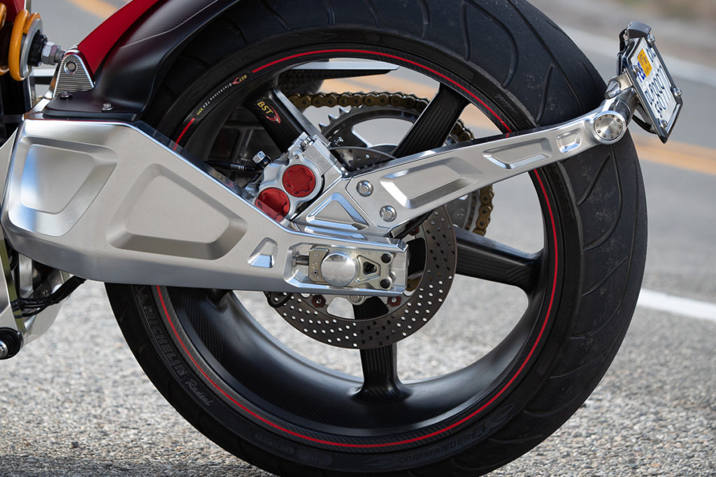 - For maximum comfort and rigidity, the frame is made up of tubular steel accompanied by a billet aluminum subframe and swingarm. Built inhouse.