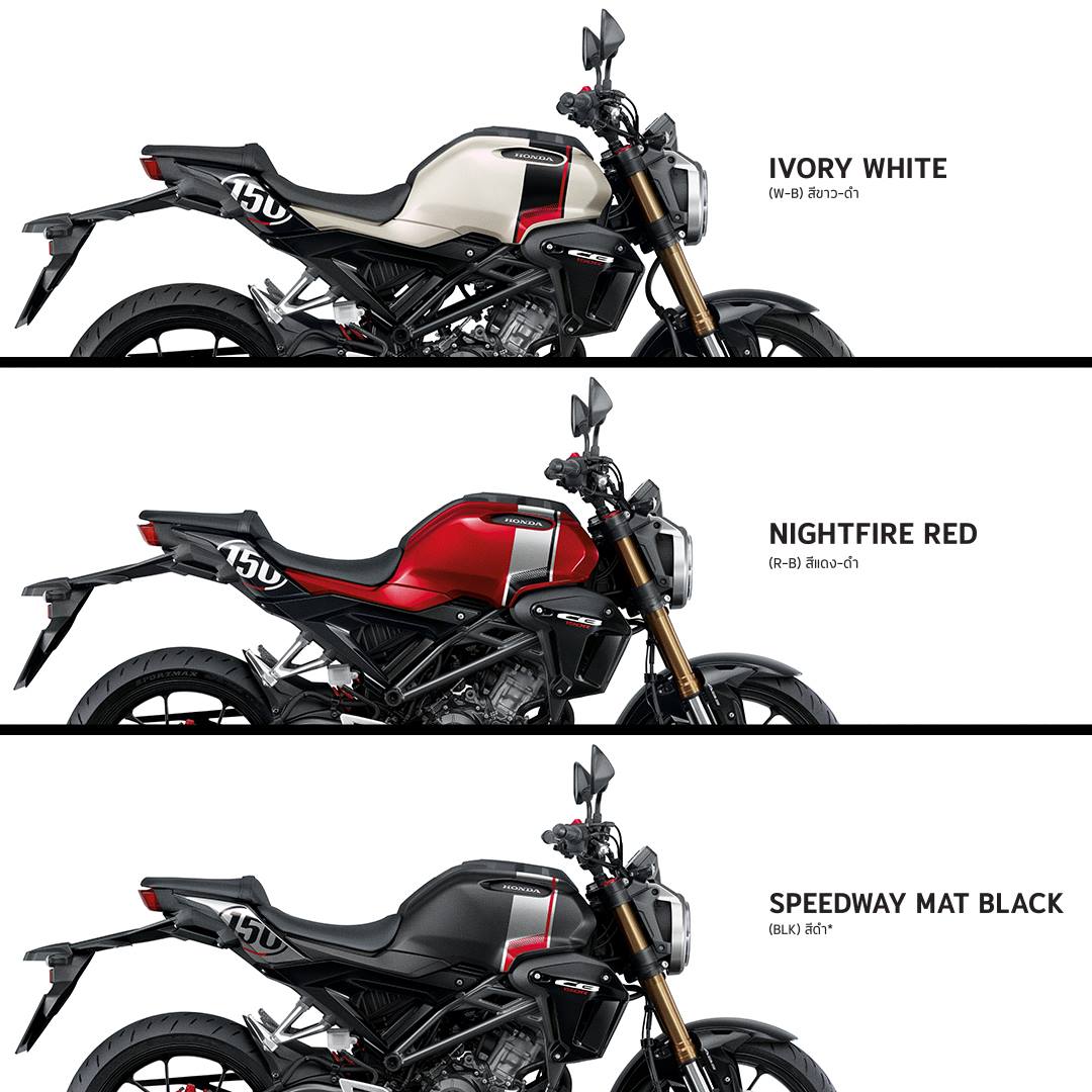 New Honda CB150R is available in 3 standard colors as standard. The front disc brake system is red-black, black and new with white-black color as well as a special version that adds ABS with G-Sensor. Choose from red-black and black, with a starting price of 99,800 baht, available nationwide from 11 March 2019 onwards
