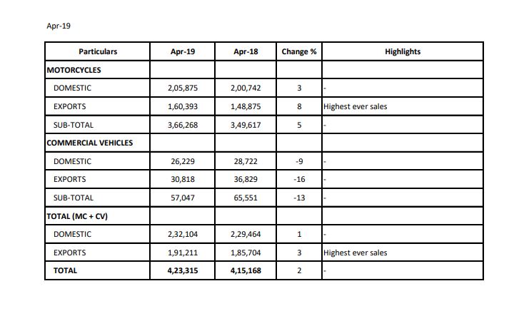 Compared to April 2018 Bajaj sales for Motorcycles Domestic and Exports Market has gone up by 16,651 units which is very positive for Bajaj.