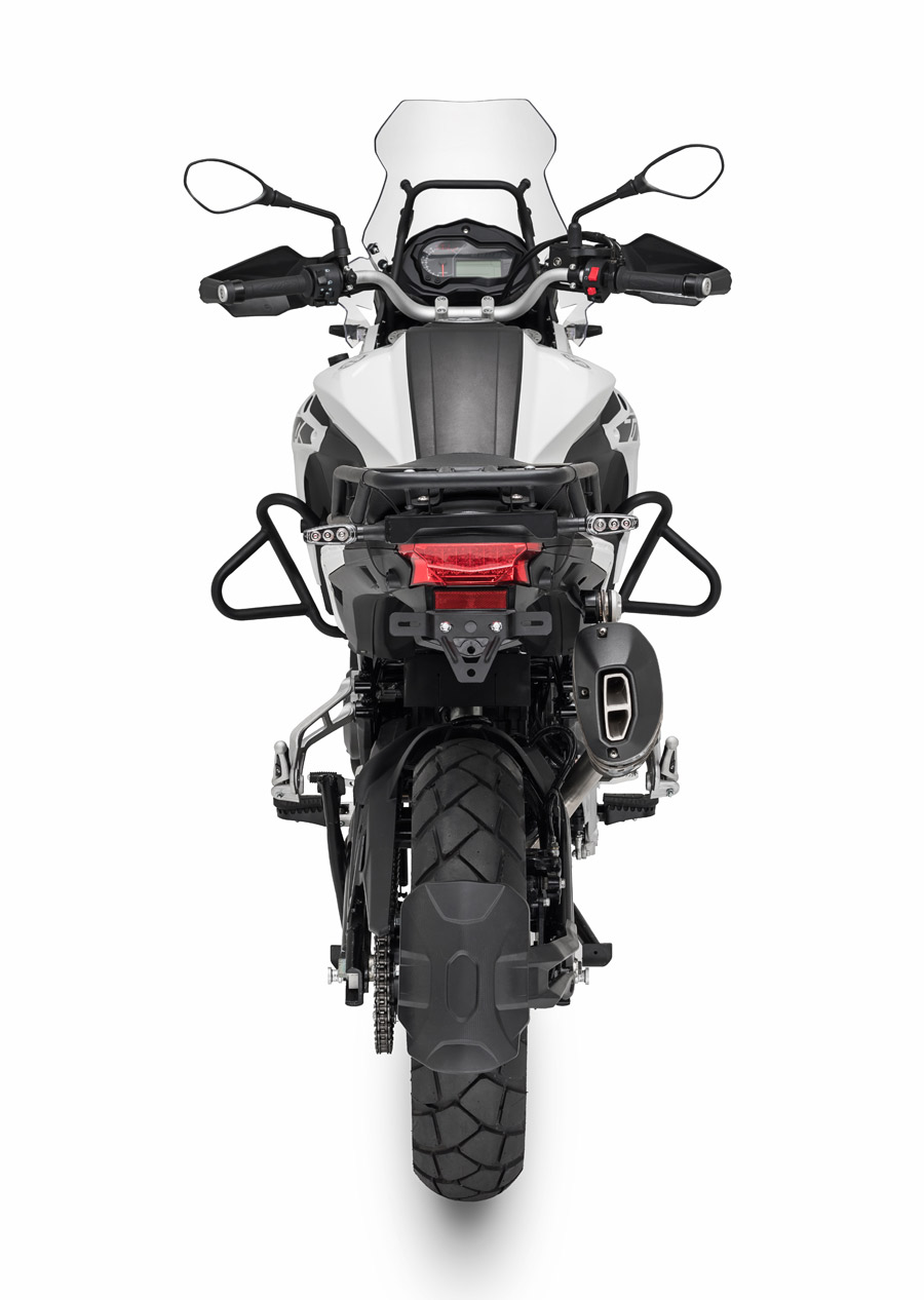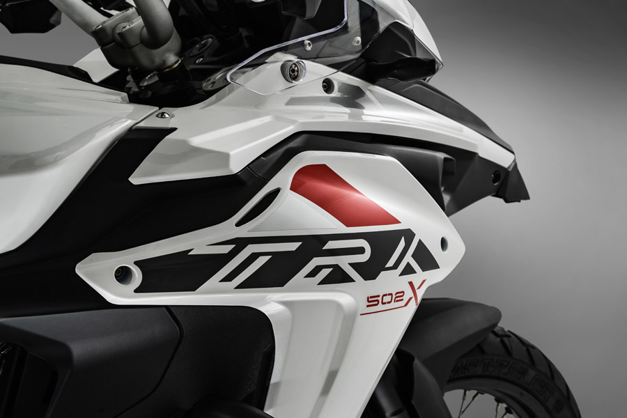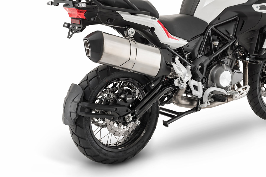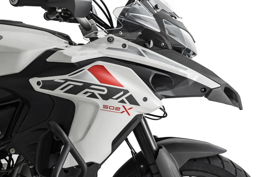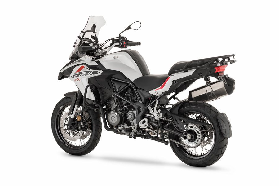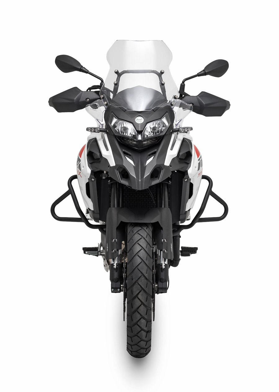 Driving the TRK 502 X is a liquid cooled twin barrel, 4-stroke, 4 valves for every cylinder Benelli motor creating 47,6 hp (35 kW) at 8500 rpm and 45 Nm (4,6 kgm) @ 5000 rpm. The edge is made of steel trellis cylinders and plates, to ensure nimbleness under all conditions.