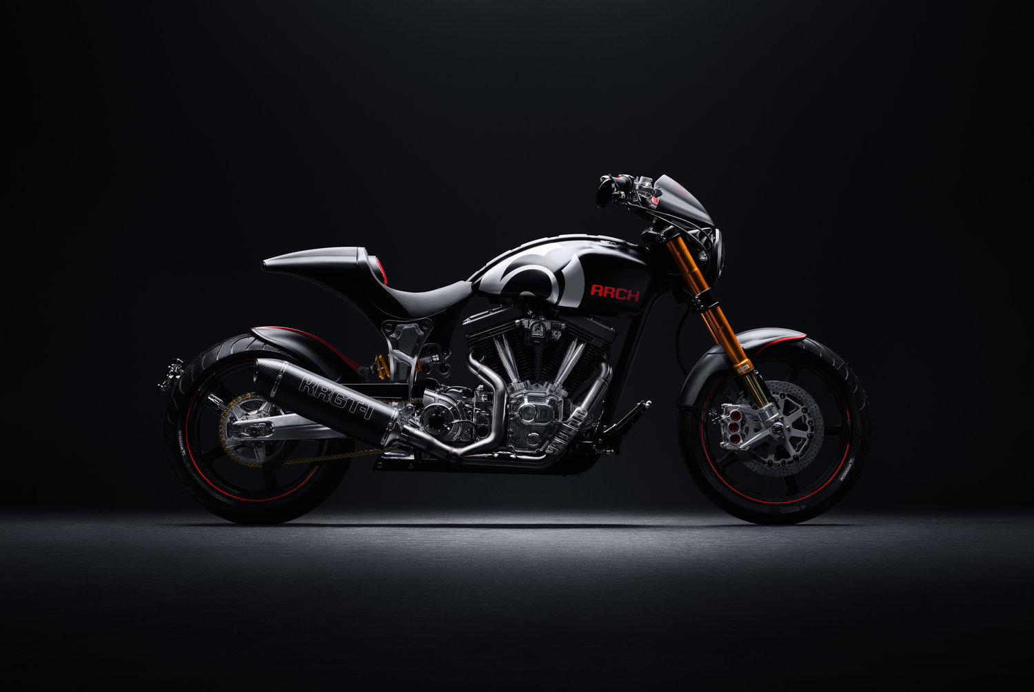 The 1s is the first production single sided swingarm motorcycle from ARCH. Â This new model is sport influenced with a more aggressive riding position while still keeping hold of its performance cruiser formulation. Â CNC Machined Aluminum and extensive use of Carbon Fiber flow within the lines of this elegant yet race inspired motorcycle. Â As with all Arch motorcycles, the 1s can be custom tailored to its owner.