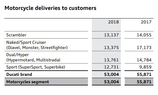 demand was likewise on the retreat. In Germany, the Ducati brand also reported a lower volume of deliveries than one.