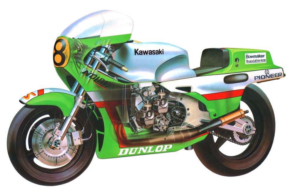 Kawasaki restored the next year with the new Uni-Trak back suspension and drivers Barry Ditchburn and Akyhiko Kiyohara : quickly two platform, at that point came the English Mick Grant , who won two GPs.