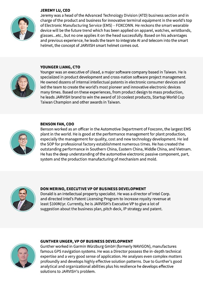 JARVISH was founded in 2014 by a group of motorcycle enthusiasts and members of the former Advance Technology Division (ATD) team at Foxconn. The team is passionate about the freedom and adventure that riding a motorcycle brings. JARVISH’s goal is to improve the safety and experience for riders.