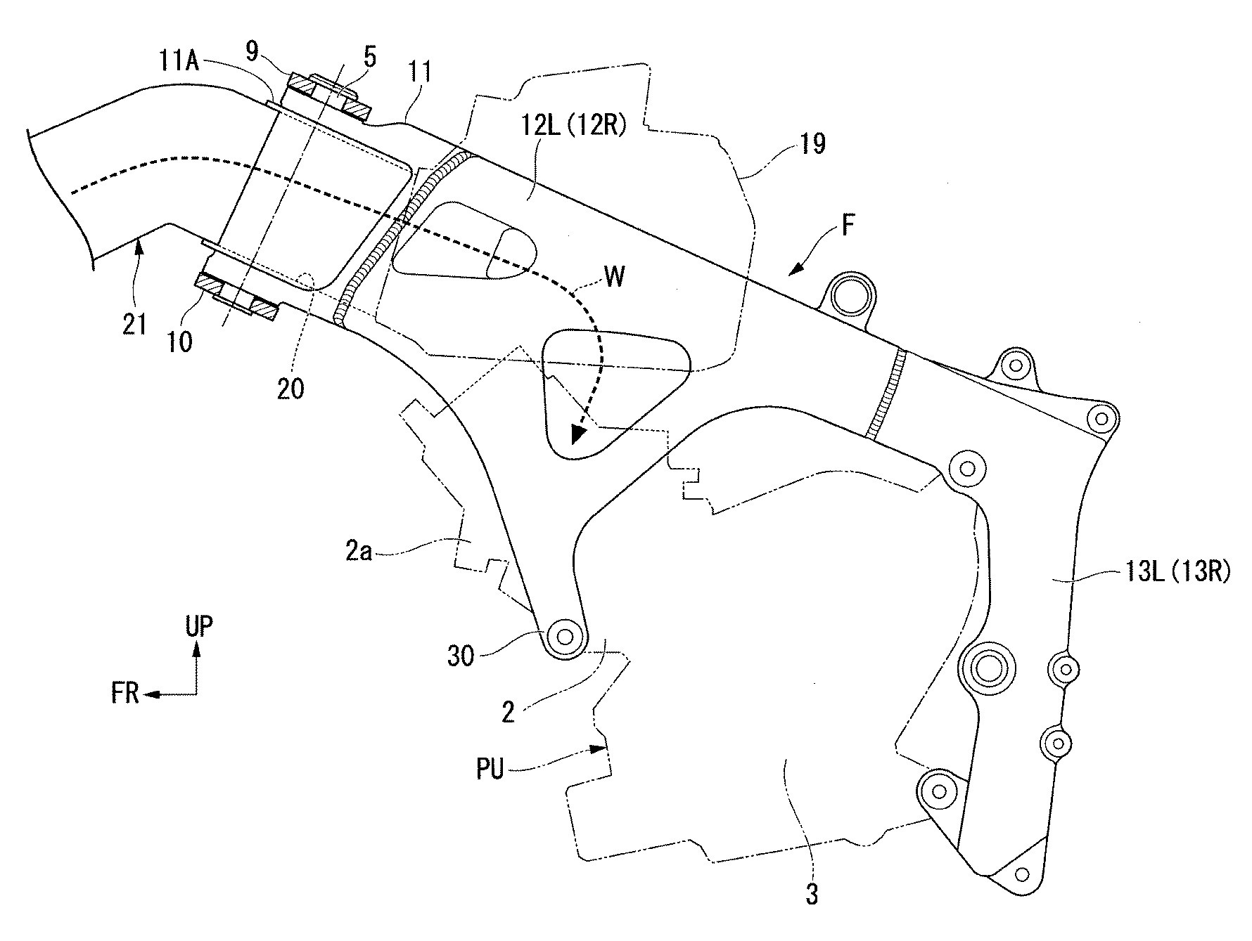 Major change is the frames.The new frame is patented by cross member 40 (made of carbon fiber reinforced resin) to connect with a frame. 19 is an air cleaner .